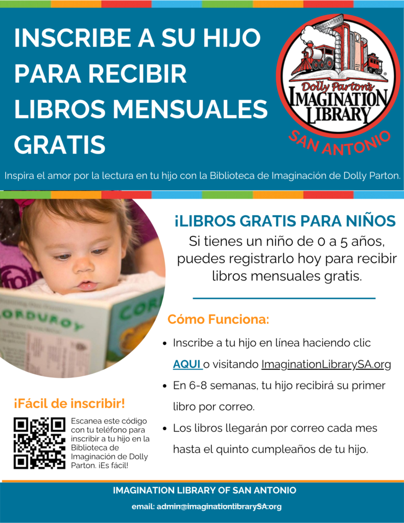 Join our mission! Tell your family and friends! Follow us on social media. We need you to spread the word that Dolly Parton’s Imagination Library is here for kids in San Antonio.